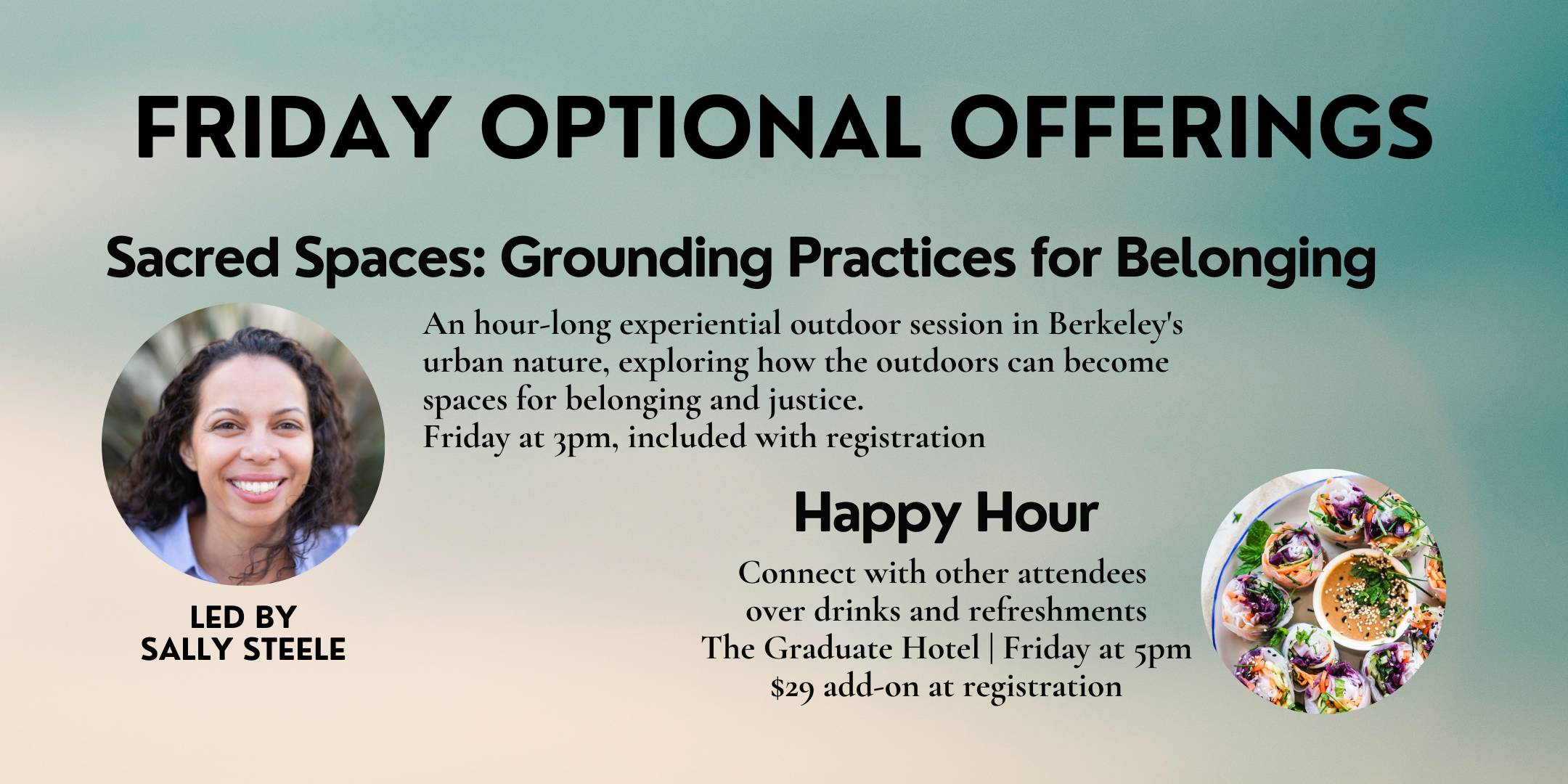 Our keynote speaker will be Pádraig Ó Tuama, theologian, poet, and conflict transformation practitioner. Pádraig will be joined by an inspiring lineup of speakers, including Adriene Thorne, Gail Song Bantum, Megan Pardue, and Tyler Sit and Imagination Workshops with Barbara Lyon. We're excited to announce two optional offerings on Friday between sessions. Sally Steele, co-founder and CEO of Outdoorithm Collective and Outdoorithm will offer an experimental, one-hour gathering called Sacred Spaces: Grounding Practices for Belonging. Then, join us for a happy hour to spend more time connecting with the amazing people attending the gathering. ​We’re grateful to offer sliding scale ticket prices for this event. Tickets include single evening options as well as the full three-day gathering.